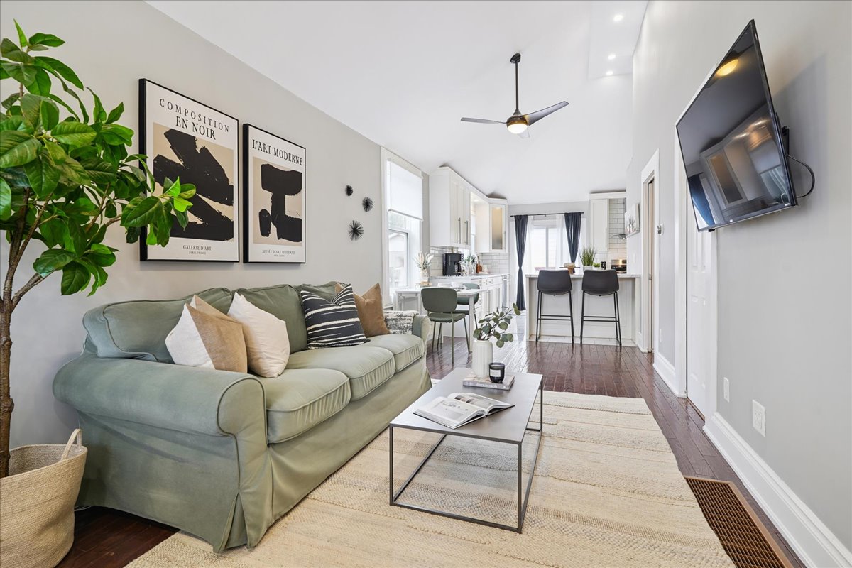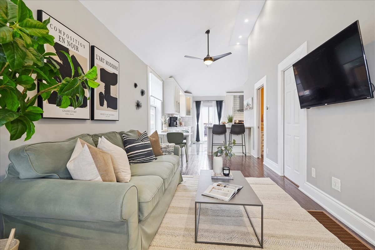 From the moment you open the door, this home impresses with every step you take. Vaulted ceilings and open concept layout make this three bedroom bungalow feel spacious and welcoming. Natural light pours in from every direction as the living room flows seamlessly into the larger-than-expected modern kitchen. Would-be chefs will be right at home with counter space + storage for days, brand new gas stove (2026), refrigerator (2026) + dishwasher (2026). Indoor/outdoor entertaining is seamless with a kitchen walk-out to the backyard deck. Enjoy morning coffee and summer evenings on the large, sunny deck as the kids and fur babies play in the fully fenced backyard. The covered front porch is an underrated bonus — the kind of charming detail that makes a house feel like a home before you even step inside. The primary bedroom is set aside from the other two bedrooms and allows for peaceful enjoyment. Situated in a family-friendly neighbourhood, a short walk from local schools, and basically next door to Andy Warburton Playground with a splash pad + shallow wading pool. Short drive from Ottawa St Farmers’ Market and Gage Park. Washer + Dryer (2025).